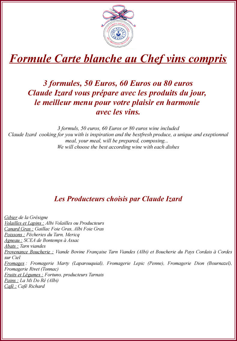 Les Menus sont ici présentés à titre indicatif. Ils peuvent être sujets à des changements selon la saison,